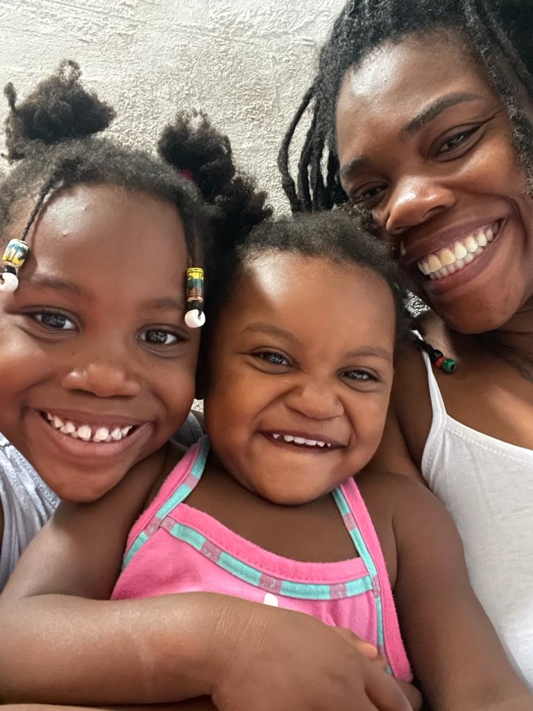 Adriana: Tenho com as gurias uma relação muito franca. Se tenho vontade de chorar, choro na frente delas e me mostro vulnerável, forte ou amorosa. Não mascaro minhas falhas diante delas e faço um exercício de me desculpar quando identifico erros. Sou uma mãe diferente para cada uma delas, para a Nyanga que é uma criança mais passiva, sou uma mãe mais paciente, com a Ba que é mais desafiadora, sou uma mãe mais cansada.