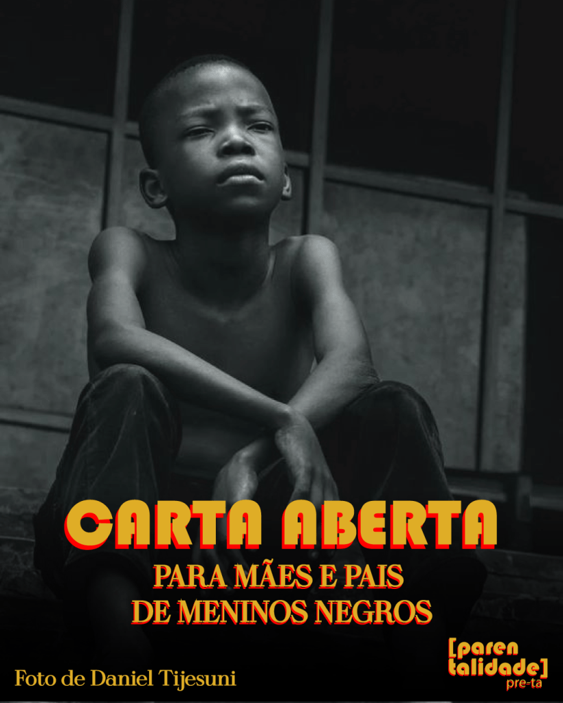 Infelizmente uma máxima que cunhei aqui tem se repetido e o intuito desse ensaio é fazer com que você (e eu) reflita(mos) nos locais onde estamos expondo nossos meninos. Mais uma vez, por mais que eu odeie, tenho razão. “ O corpo masculino Preto é o receptáculo de toda a violência colonial”. Com certeza, o Caetano não seria contido como um escravizado no pelourinho, mas seu filho pode ser.